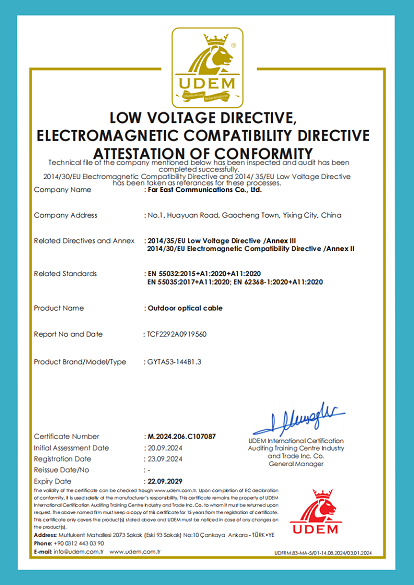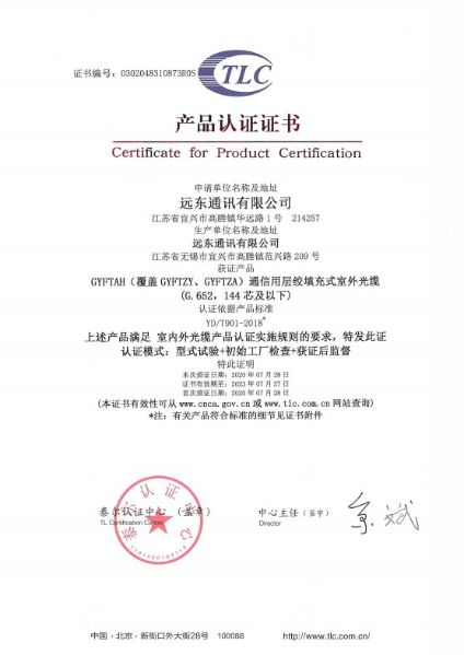 通訊光纜的設(shè)計(jì)開發(fā)、生產(chǎn)管理體系認(rèn)證證書