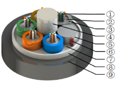 7 阻水纜膏、 8 雙面涂塑皺紋鋁帶、9 低煙無鹵阻燃外護套