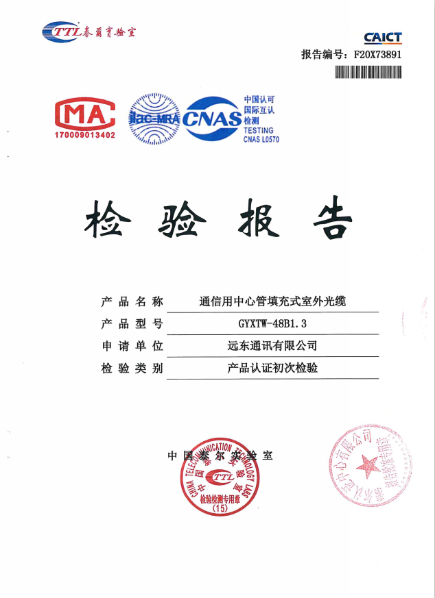 "8"字形自承式室外光纜檢驗(yàn)報(bào)告