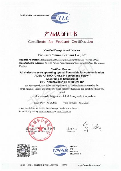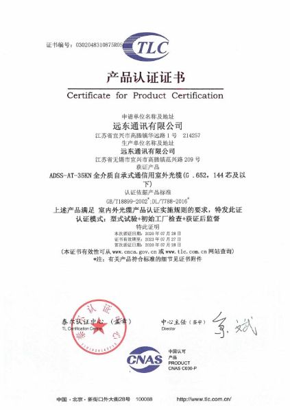 ADSS-AT-35KN產(chǎn)品認(rèn)證證書