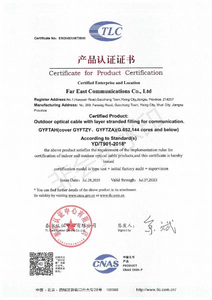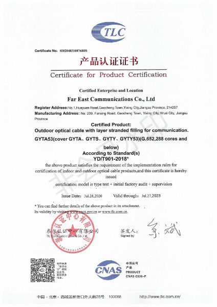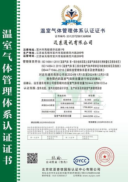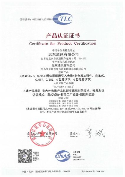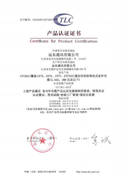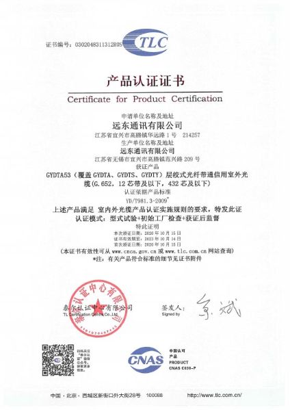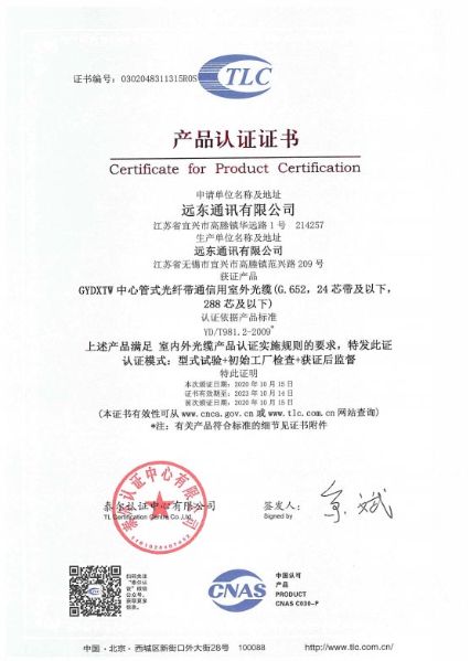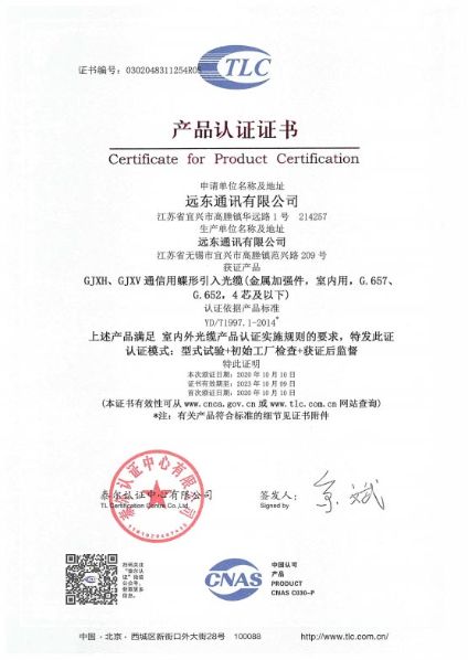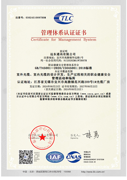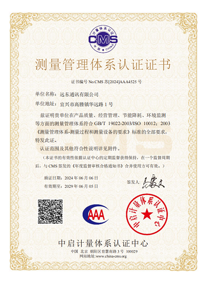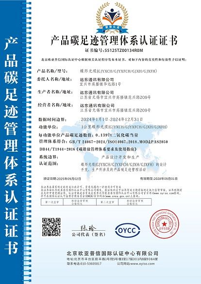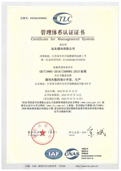 通訊光纜的設(shè)計(jì)開發(fā)、生產(chǎn)管理體系認(rèn)證證書