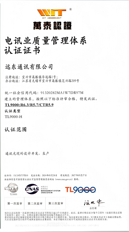 光纜、光纖、光纖預(yù)制棒質(zhì)量體系證書